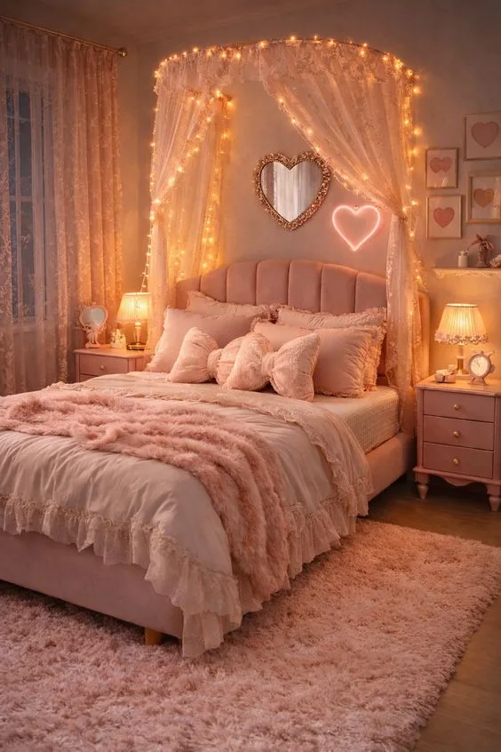Sweet, heart-forward bedrooms with cozy pinks and reds that feel warm year-round.